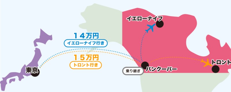 さらに、一括購入の場合はバンクーバーでの滞在期間を柔軟に調整できるため、家族との時間を取ってからイエローナイフへ移動するスケジュールも可能です。例えば「日本からバンクーバーに到着 → 数日滞在 → イエローナイフへ移動」という旅程を1枚の航空券で組むことができます。