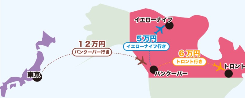 日本からバンクーバーまでの往復航空券を購入し、その後に別途バンクーバー~イエローナイフの国内線を手配すると、合計費用が割高になるケースが多く見られます。この「分け買い」は一見シンプルですが、結果的に余計な出費につながります。